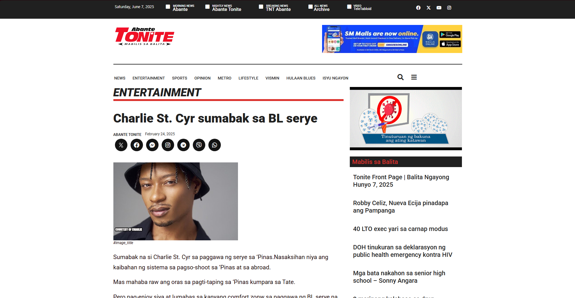 Charlie St. Cyr sumabak sa BL seryeABANTE TONITE