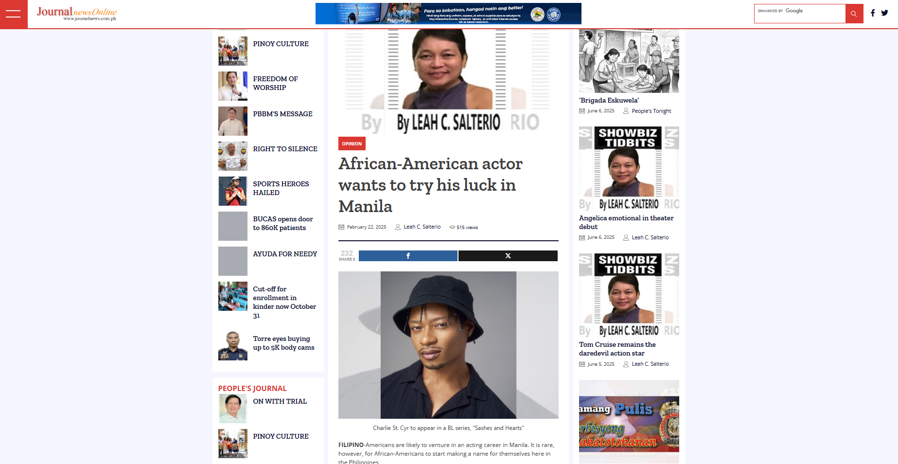 African-American actor wants to try his luck in ManilaPEOPLES JOURNAL TONIGHT